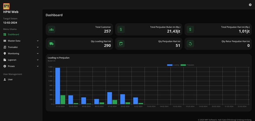 HPM Web Aplikasi khusus yang dikembangkan untuk CV. Hasan Putra Mandiri, yang terdiri dari Modul Pembelian, Penjualan, Hutang, Piutang, Stock, Monitor Tim Sales dan Insentif Sales. System terintegrasi dengan HPM Mobile dan Transaksi Realtime sehingga pelaporan dengan cepat dapat disajikan dan managemen lebih fokus dan menjadikan Bisnis Anda lebih cepat berkembang.